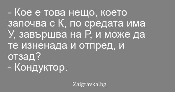 - Кое е това нещо, което започва с К, по средата има У, завършва на Р, и може да те изненада и отпред, и отзад?