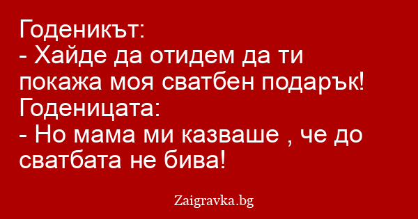- Тогава дай да се изчукаме в наблизо в храстите, пък ще дойдем напролет - казал пича