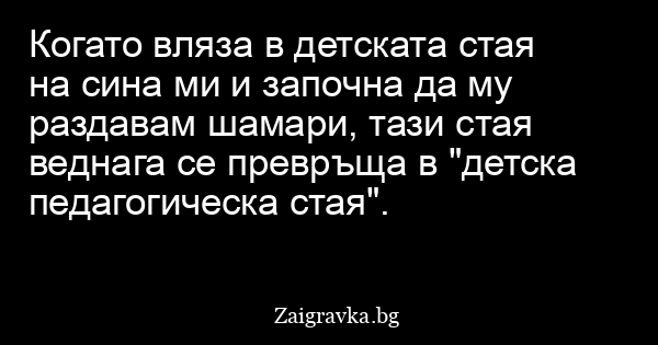 Когато вляза в детската стая на сина ми и започна да му раздавам шамари, тази стая веднага се превръща в "детска педагогическа стая".