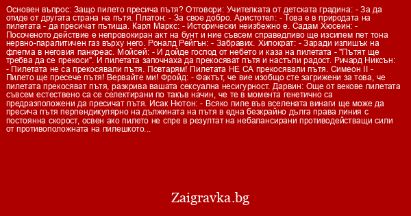 Основен въпрос: Защо пилето пресича пътя?