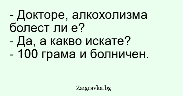 Един носи в поликлиниката голям буркан с урина. Докторът го пита: