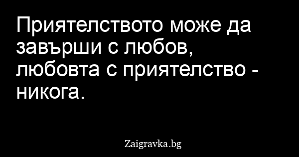 Приятелството може да завърши с любов, любовта с приятелство - никога.