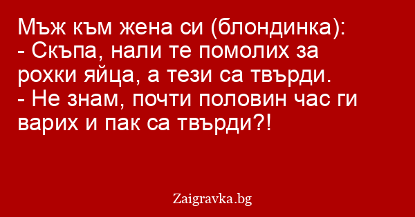 - Скъпа, нали те помолих за рохки яйца, а тези са твърди.