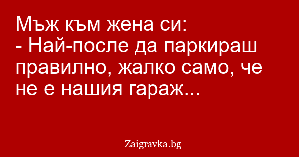 - Най-после да паркираш правилно, жалко само, че не е нашия гараж...