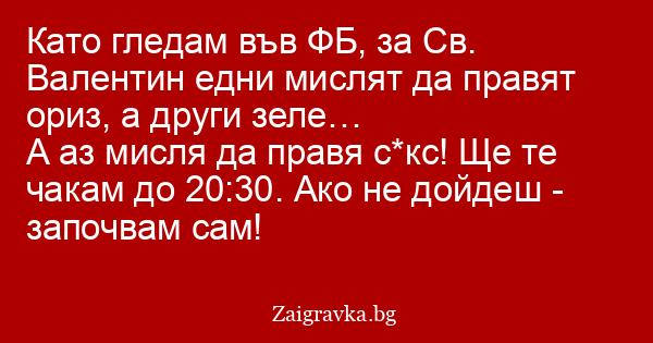 Като гледам във ФБ, за Св. Валентин едни мислят да правят ориз, а други зеле…