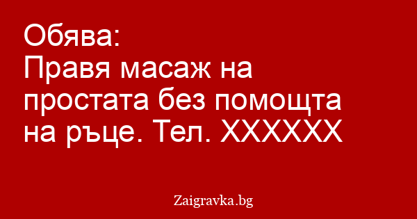 Правя масаж на простата без помощта на ръце. Тел. XXXXXX