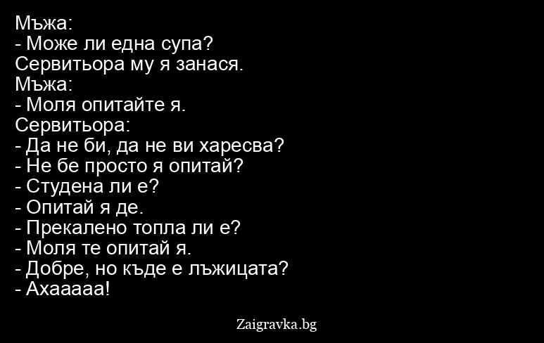 – И влизам аз в банята, пълня ваната, ръся там някакви смрадливи соли, правя една хубава пяна, напускам вътре всички гумени патета, събличам се и тъкмо ще прекрачвам, се сещам, че влязох да оправя течащия кран...
