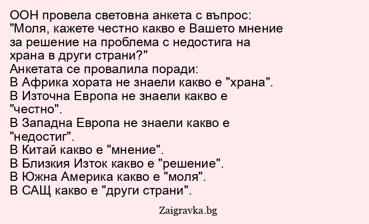 "Моля, кажете честно какво е Вашето мнение за решение на проблема с недостига на храна в други страни?"