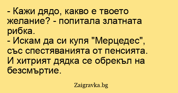 - Кажи дядо, какво е твоето желание? - попитала златната рибка.
