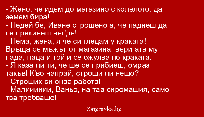 - Недей бе, Иване строшено а, че паднеш да се прекинеш нег'де!