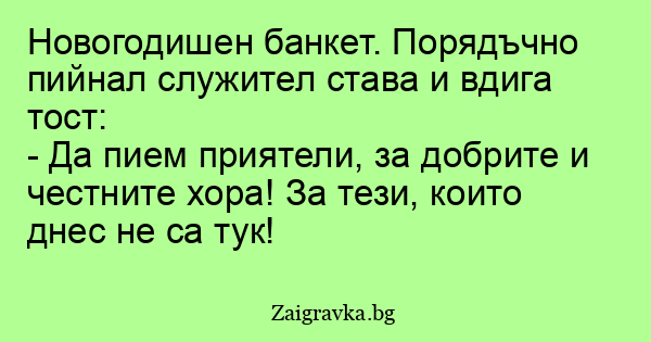 Новогодишен банкет. Порядъчно пийнал служител става и вдига тост: