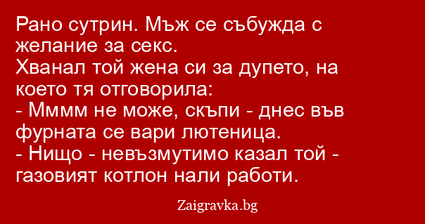 - Нищо - невъзмутимо казал той - газовият котлон нали работи.