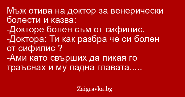 -Доктора: Ти как разбра че си болен от сифилис ?