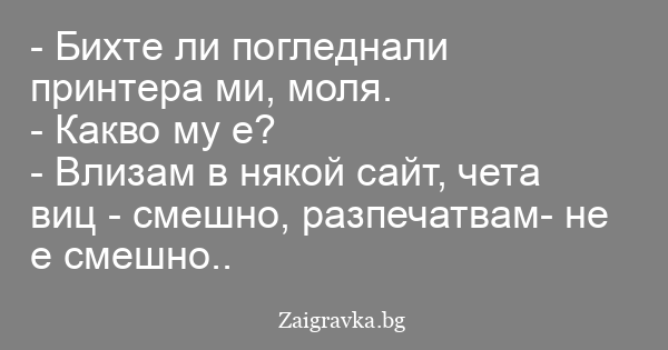- Влизам в някой сайт, чета виц - смешно, разпечатвам- не е смешно..