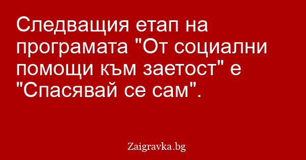 Следващия етап на програмата "От социални помощи към заетост" е "Спасявай се сам".
