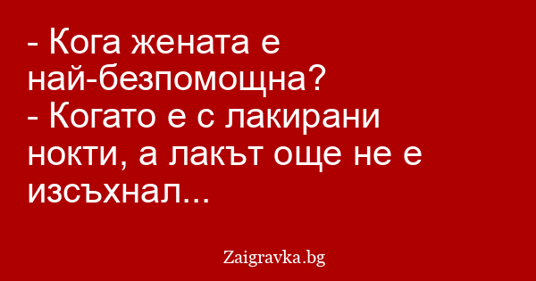 - Когато е с лакирани нокти, а лакът още не е изсъхнал...