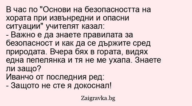 В час по "Основи на безопасността на хората при извънредни и опасни ситуации" учителят казал: