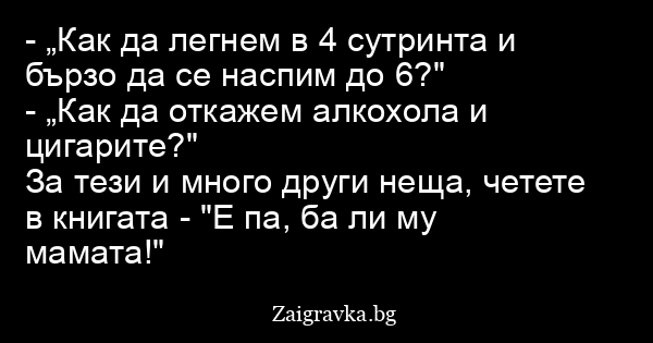 За тези и много други неща, четете в книгата - "Е па, ба ли му мамата!"