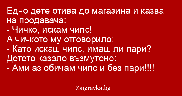 - Тате, защо всички приказки които ги ми четеш вечерта започват с "Имало едно време...", а завършват винаги с хр-хр-хр.