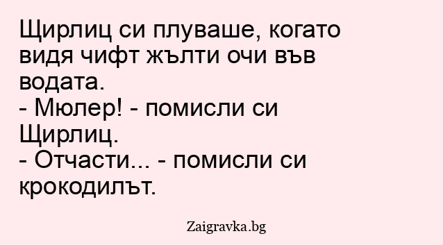 Щирлиц си плуваше, когато видя чифт жълти очи във водата.