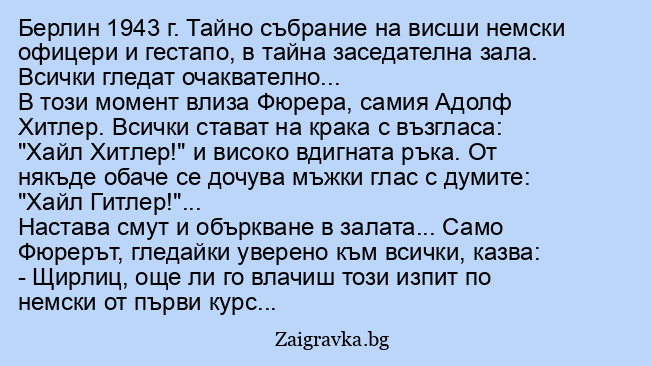 - Щирлиц, още ли го влачиш този изпит по немски от първи курс...