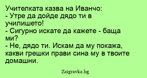 - Не, дядо ти. Искам да му покажа, какви грешки прави сина му в твоите домашни.