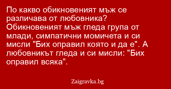 Обикновеният мъж гледа група от млади, симпатични момичета и си мисли "Бих оправил която и да е". А любовникът гледа и си мисли: "Бих оправил всяка".