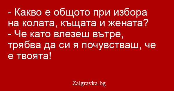 - Какво е общото при избора на колата, къщата и жената?