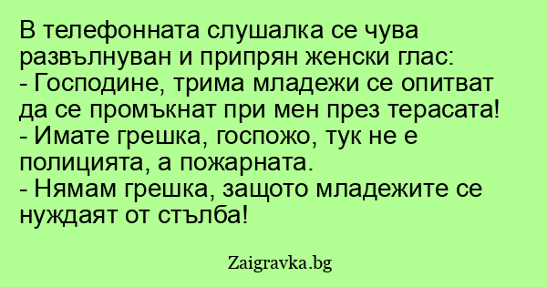 - Имате грешка, госпожо, тук не е полицията, а пожарната.