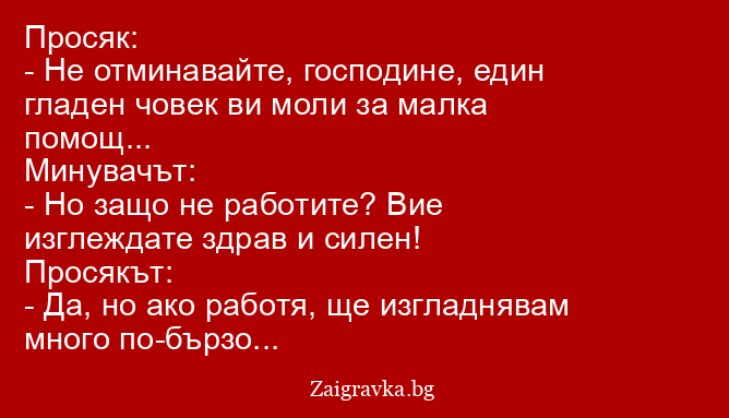 - Не отминавайте, господине, един гладен човек ви моли за малка помощ...