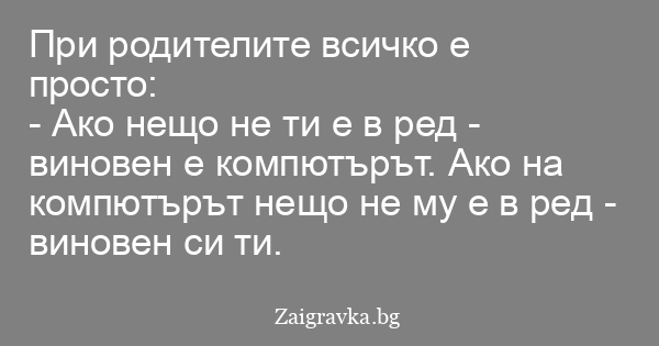 - Ако нещо не ти е в ред - виновен е компютърът. Ако на компютърът нещо не му е в ред - виновен си ти.