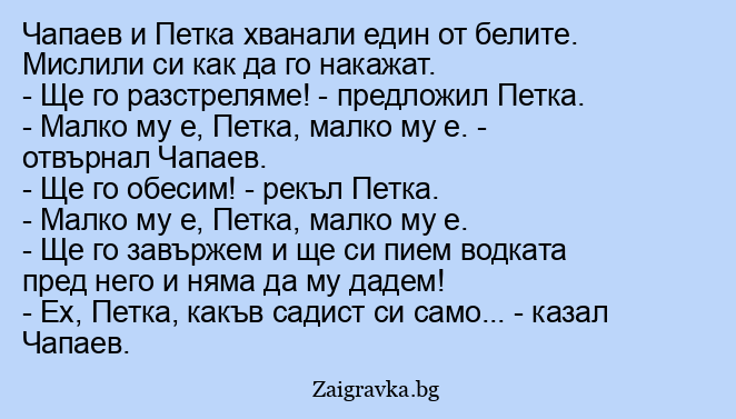 - Ех, Петка, какъв садист си само... - казал Чапаев.