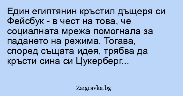 Един египтянин кръстил дъщеря си Фейсбук - в чест на това, че социалната мрежа помогнала за падането на режима. Тогава, според същата идея, трябва да кръсти сина си Цукерберг...