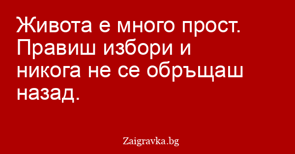 Живота е много прост. Правиш избори и никога не се обръщаш назад.