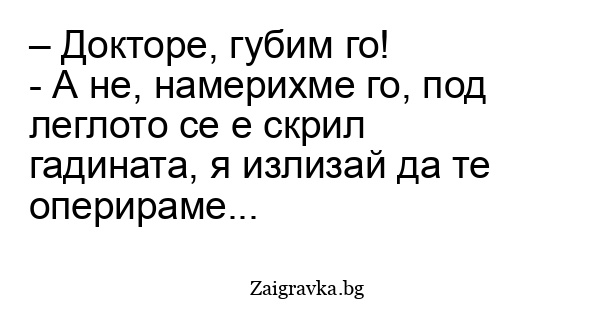 - А не, намерихме го, под леглото се е скрил гадината, я излизай да те оперираме...