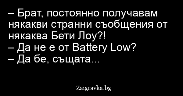 – Брат, постоянно получавам някакви странни съобщения от някаква Бети Лоу?!