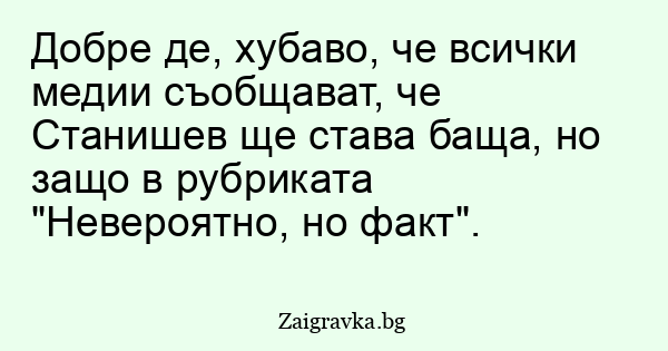 Добре де, хубаво, че всички медии съобщават, че Станишев ще става баща, но защо в рубриката "Невероятно, но факт".