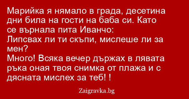 Марийка я нямало в града, десетина дни била на гости на баба си. Като се върнала пита Иванчо: