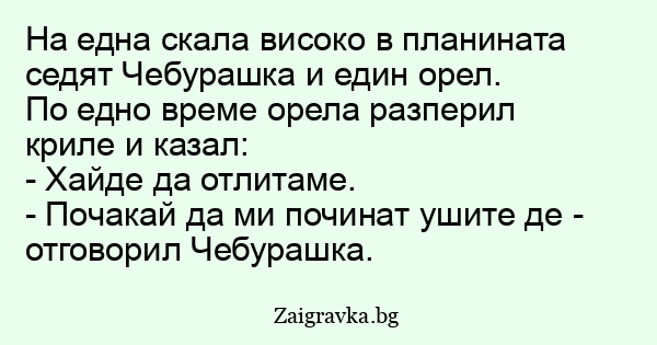 - Почакай да ми починат ушите де - отговорил Чебурашка.