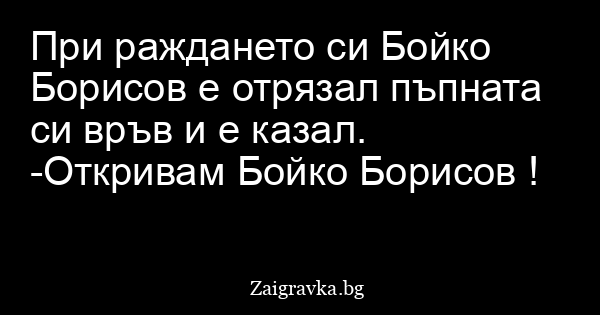 При раждането си Бойко Борисов е отрязал пъпната си връв и е казал. -Откривам Бойко Борисов !