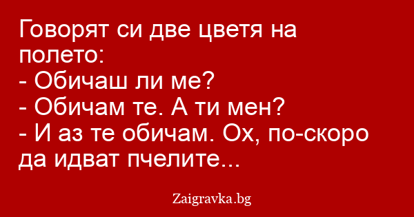 - И аз те обичам. Ох, по-скоро да идват пчелите...