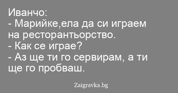 - Марийке,ела да си играем на ресторантьорство.