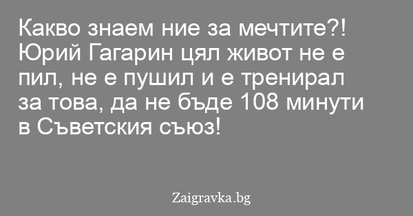 Какво знаем ние за мечтите?! Юрий Гагарин цял живот не е пил, не е пушил и е тренирал за това, да не бъде 108 минути в Съветския съюз!