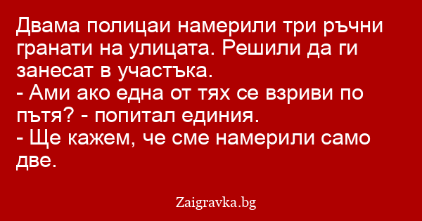 Двама полицаи намерили три ръчни гранати на улицата. Решили да ги занесат в участъка.