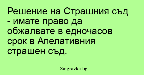 Решение на Страшния съд - имате право да обжалвате в едночасов срок в Апелативния страшен съд.