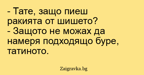 - Тате, защо пиеш ракията от шишето?