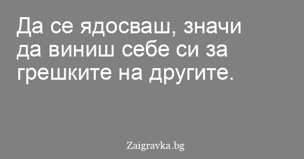 Да се ядосваш, значи да виниш себе си за грешките на другите.
