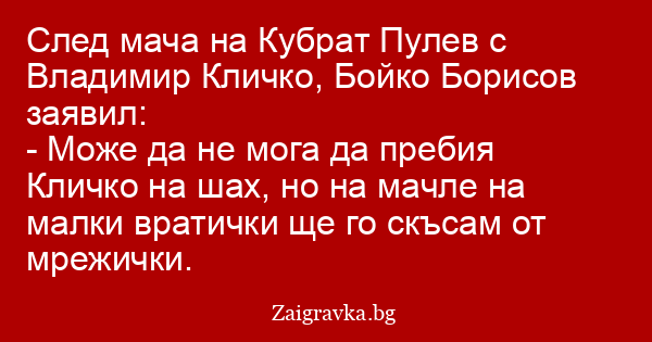- Може да не мога да пребия Кличко на шах, но на мачле на малки вратички ще го скъсам от мрежички.