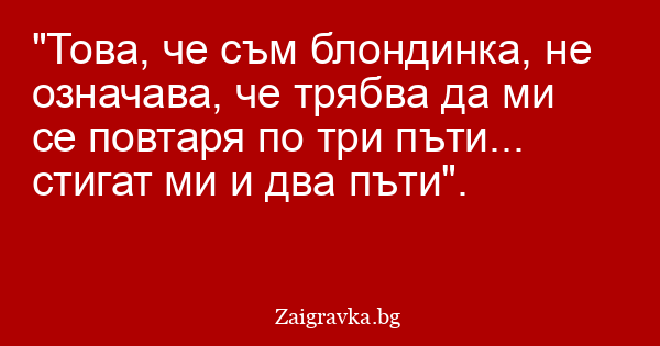 "Това, че съм блондинка, не означава, че трябва да ми се повтаря по три пъти... стигат ми и два пъти".