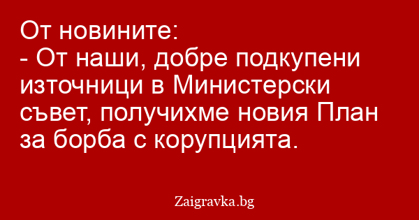 - От наши, добре подкупени източници в Министерски съвет, получихме новия План за борба с корупцията.